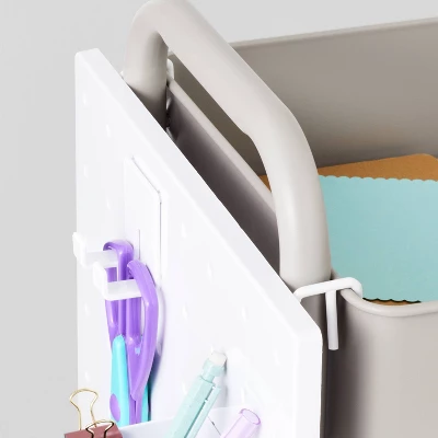 Clear up and organize your office’s desk space with this Pegboard Set from Brightroom™. This pegboard set comes with five pieces: a clip, two hooks, and two mini square storage containers. The design is ideal for hanging photos, and storing office supplies like scissors, pens and pencils, erasers, sticky notes and more. Hang the pegboard on a nearby wall for easy access to your desk supplies whenever you need them, or use with a Brightroom storage cart or wire shelf to create your own custom storage solution that suits your space.